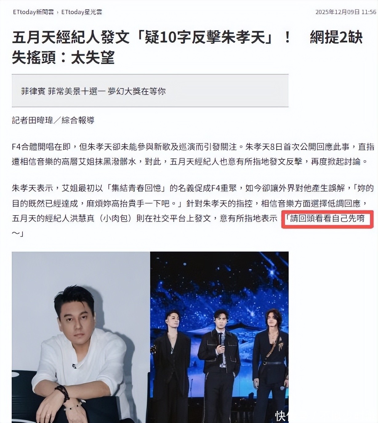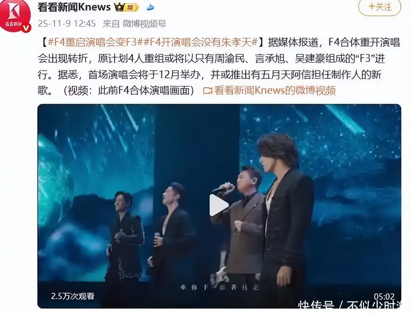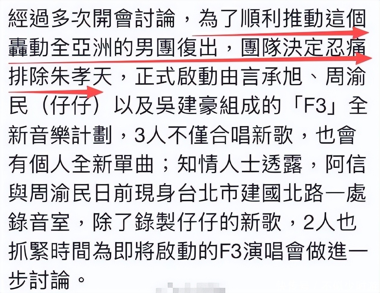 然而谁都没想到,短短五个月后,这一裂痕竟演变为实质性切割——朱孝天被正式排除在后续活动中,F4实质上已变为F3。